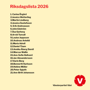 Den 1 mars hade Vänsterpartiet Väst sin Valkonferens där vi beslutade om vår region & riksdagslista!